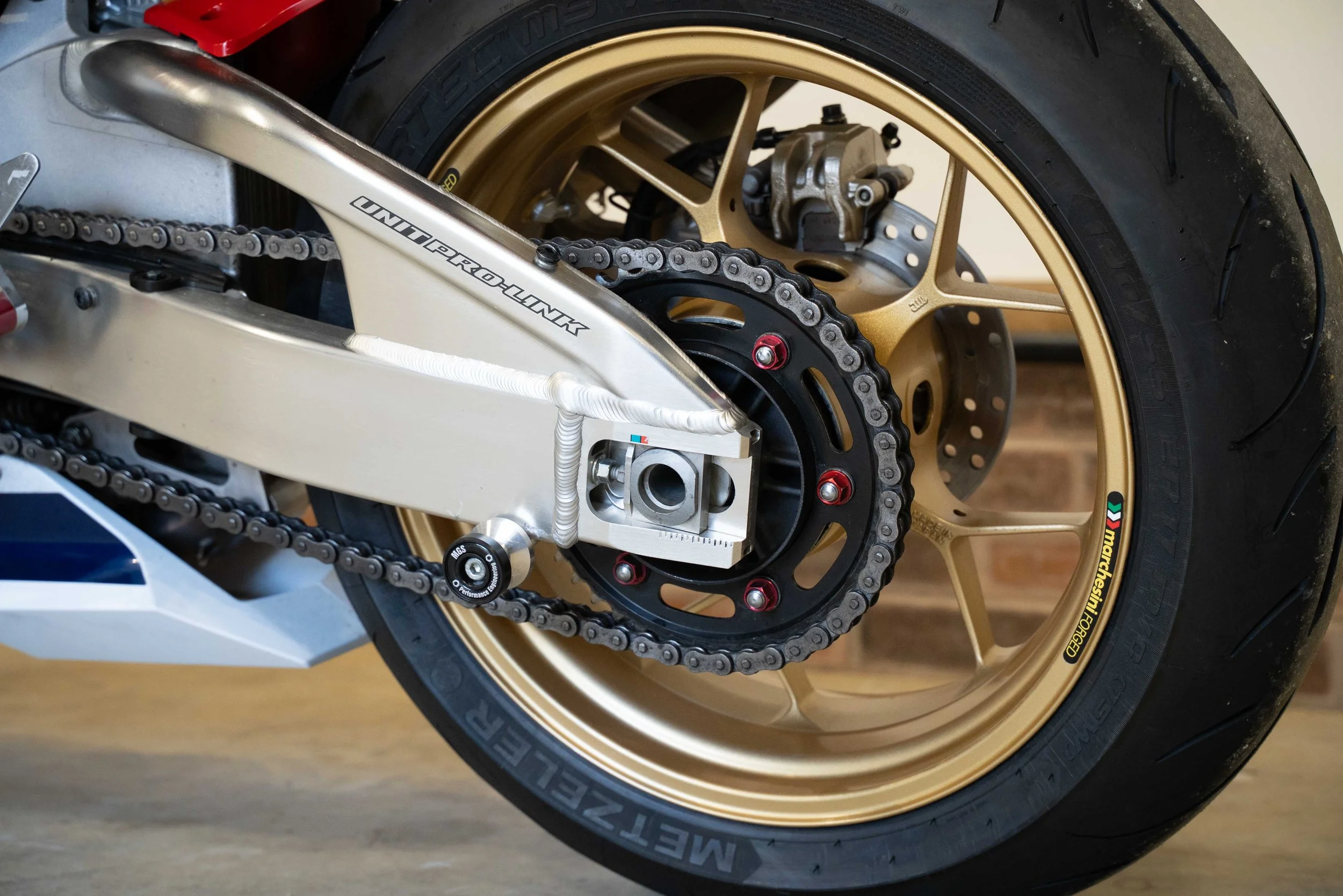 It comes with a great spec out of the box being teh SP, Marchesini wheels, fantastic electronics suite and the gorgeous semi-active Ohlins front and rear. Our bike has been added to with the Arrow exhaust, tail tidy, rear sets and screen.
